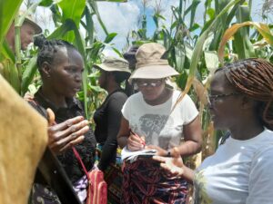 That is the beauty in farmer-to-farmer knowledge exchanges. Instead of relying on just external input, farmers learn directly from one another through demonstrations, field visits, and community discussions. This peer-to-peer model, deeply rooted in the principles of agroecology, proved to be the most effective learning tool on this field trip as well. At Elector’s farm, visitors learned about Azolla, a fast-growing plant that serves as nutrient-rich livestock feed and biofertiliser, and how to grow it. At Gladys’ field, they saw intercropping in action: maize, groundnuts, and pumpkins growing together, each playing a specific role in supporting the others. At Cosmas’ farm, we examined a dry toilet that converts human waste into safe, organic fertiliser, closing the nutrient loop in a way that synthetic inputs can’t. Also very powerful was the exchange of information in the discussions that followed. Farmers asked farmers questions: How do we convince our neighbours to try these methods? How do we get youth interested? How soon can we see the results, and how do we keep from losing hope? The answers came not from manuals, but from lived experience.