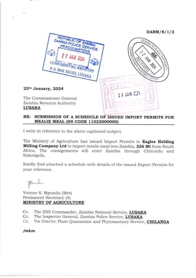 LUSAKA, 29th January 2024ARE WE BEING FED GENETICALLY MODIFIED MAIZE?